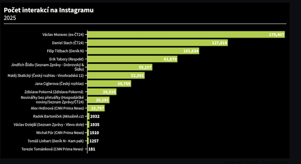 Sociální sítě umožňují médiím a zpravodajským webům na denní bázi zasáhnout stovky tisíc lidí. Zároveň dovolují jednotlivým novinářům a novinářkám budovat si svou osobní značku. Některým natolik úspěšně, že se jim daří konkurovat i tradičním značkám. Největším českým influencerem je podle analýzy New School Communications Václav Moravec, jenž dosahuje na Instagramu téměř 180 tisíc interakcí. Na druhém místě se umístil Daniel Stach s téměř 128 tisíci interakcemi a trojici uzavírá zástupce Deníku N, Filip Titlbach, s více než 101 tisíci interakcemi.