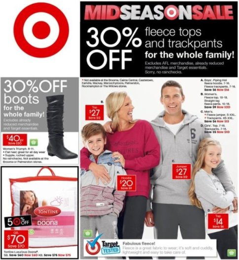 O nic lépe se ale nedařilo ani australskému obchodnímu řetězci Target. Image šťastné rodinky z katalogu poněkud kazí tříruký otec.