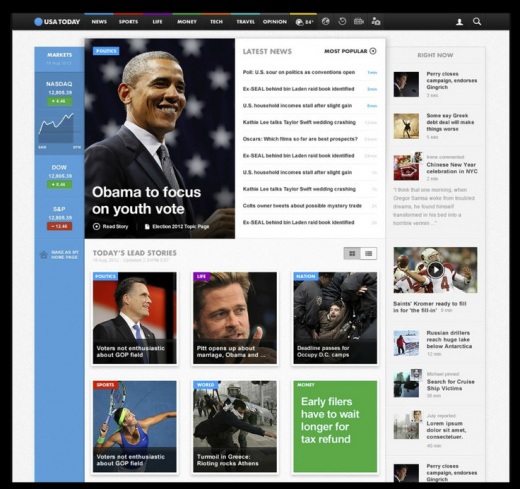 Nová webová stránka USA Today je čistší a obsahuje méně reklam. Má také větší obrázky a v současnosti již standardní funkci horizontálního posunu pro uživatele tabletů.