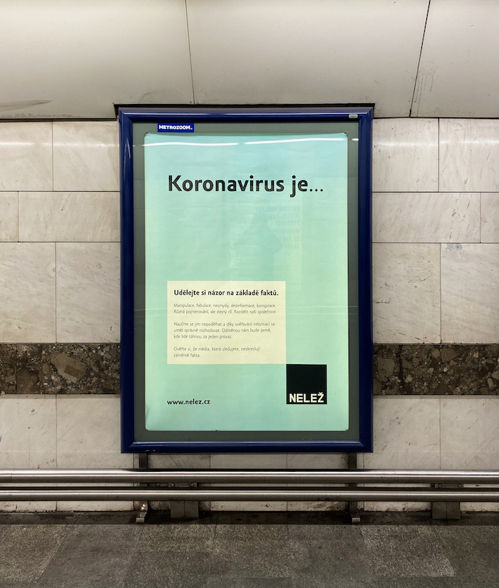 Spolek Nelež, který založili kreativci za účelem boje proti dezinformacím, spustil na podzim komunikační kampaň. Postavil ji na nejsledovanějších jménech, kauzách a otázkách, kolem kterých se dezinformace šíří. Jednotlivá témata nechává otevřená a zároveň apeluje na lidi, aby se rozhodovali na základě faktů.