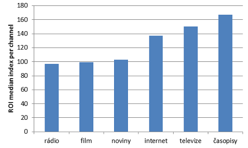Není možné popsat všechny výsledky výzkumu, proto zmíním jen jeden z nich. Analýza 77 kampaní s rozpočtem až do 6 mil. liber pomocí indexu ROI podle jednotlivých medií ukázala, že časopisy dosahují společně s televizí z jednotlivých mediálních kanálů nejvyšší míry návratnosti investic.