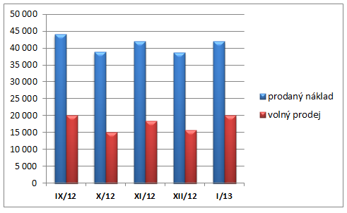 Snížení prodejní ceny o 10 korun z původních 40 Kč, ke kterému došlo od začátku letošního roku, a silná marketingová kampaň, se příliš nepromítly do růstu prodaného nákladu týdeníku Týden. Ukazují to lednová data ABC ČR, podle nichž průměrný prodej Týdne dosáhl 42 040 výtisků. To je podobná úroveň, na které se prodej Týdne pohyboval před zlevněním v průběhu podzimu (září až prosinec 2012 – průměrný prodej 41 tis. výtisků). Za celý loňský rok pak průměrný prodaný náklad zpravodajského týdeníku dosáhl více než 41 tis. výtisků.