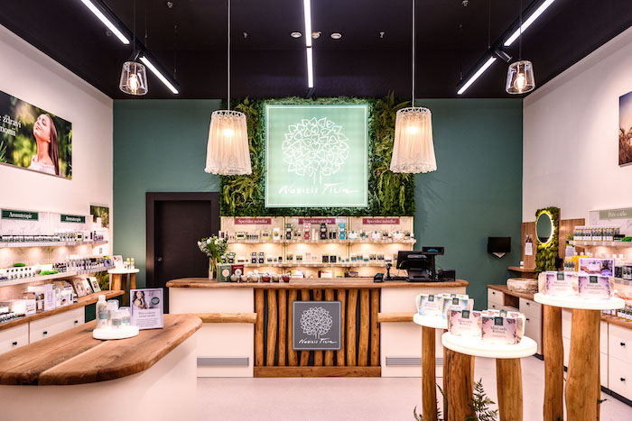 Prodejny Nobilis Tilia jsou koncipované jako zážitkové, mají zákazníkům poskytnou jedinečnou zkušenost z nákupu přírodní kosmetiky. Zároveň přibližují celý příběh značky s 30letou tradicí a atmosféru krajiny Českého Švýcarska. Prodejna vznikla ve spolupráci se společností Moris Design.