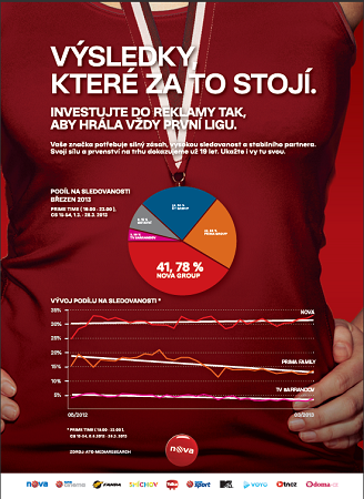 Skupina Nova využívá v tomto týdnu printovou inzerci v titulech vydavatelství Economia. Míří s ní především na odbornou veřejnost a na zadavatele reklamy. Pod sloganem „Výsledky, které za to stojí” s podtitulem „Investujte do reklamy tak, aby hrála vždy první ligu” se snaží přesvědčit největší televizní zadavtele, kteří ještě s Novou letos neuzavřeli dlouhodobou spolupráci, aby reklamu na obrazovky Novy umístili. V inzerci dále zdůrazňuje rostoucí podíl skupiny na sledovanosti v hlavním vysílacím čase ve „své” skupině 15-54, kdy se srovnává s konkurenční Prima family a s TV Barrandov, poukazuje rovněž na stabilitu a vysoký zásah a naznačuje, že reklama na obrazovkách Novy je hodna skutečných šampionů.