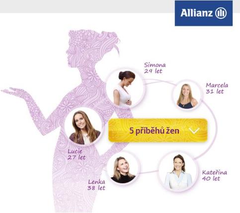 Speciální webové stránky pro ženy spustila nedávno i pojišťovna Allianz. Na webu www.pojistkaprozeny.cz se na příkladu pěti modelových příběhů odehrávají různé životní situace, do kterých se ženy mohou dostat bez ohledu na to, kolik jim je právě let, jsou-li vdané, svobodné, rozvedené, nebo zda si právě budují pracovní kariéru či vychovávají děti.