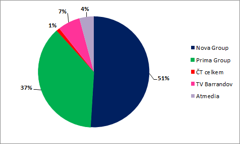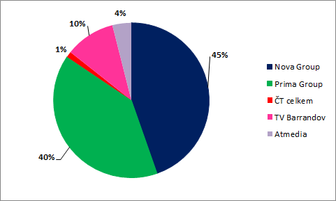 Televizní skupina Nova se v průběhu července a srpna stala nejsilnější televizní skupinou v podílu na prodaných reklamních TRPs (reklamní spoty bez sponzoringu a teleshoppingu). V cílové skupině diváků starších 15 let dosáhly její kanály 45% podílu a o pět procentních bodů tak předstihly konkurenční skupinu Prima. Obě komerční skupiny absorbují 86 % veškerých investic směřovaných do komerčních televizních spotů.