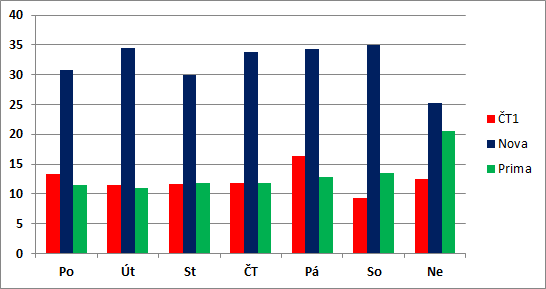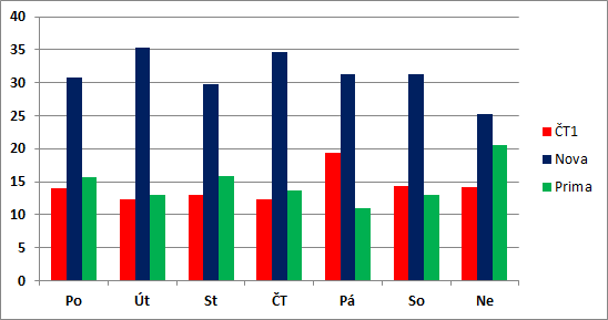 Prima nejvíc poklesla v sobotu, v úterý a ve čtvrtek. Nejvíce si polepšila v neděli.
