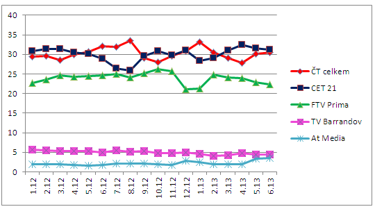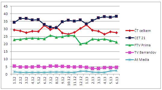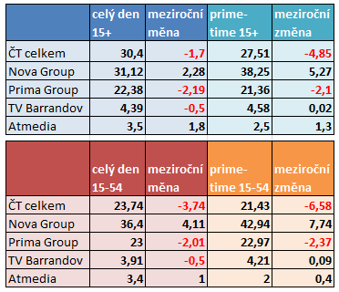 Mediální zastupitelství Atmedia zvýšilo svůj podíl především v cílové skupině 15+ v celodenním vysílání, a to o necelé 2 procentní body.