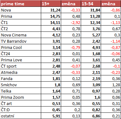 Zdroj: ATO-Mediaresearch, Pozn.: změna v procentních bodech