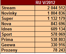 Multimediální obsah webových portálů skupiny Nova zaznamenal letos v květnu necelých 850 tis. reálných uživatelů, což oproti letošnímu lednu znamenalo nárůst o více jak 200 tis. reálných uživatelů. Ještě vyšší procentuální nárůst si připsala Prima, která v březnu spustila portál Prima Play. V květnu dosahovala návštěvnost multimediálního obsahu Primy 540 tis. reálných uživatelů, zatímco v lednu to bylo necelých 300 tisíc.