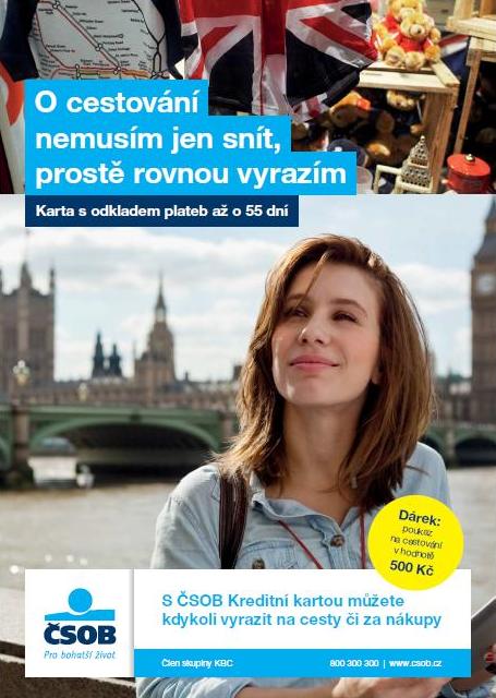 Hlavním motivem kampaně na Kreditní karty bude cestování, přičemž budou zdůrazněny hlavní přednosti používání karty, jako je rychlost získání peněz, odklad platby až o 55 dní nebo prodloužená záruka u zboží zaplaceného kartou. Kampaň bude podpořena akční nabídkou, při které mají noví držitelé karet možnost získat poukaz na služby Student Agency v hodnotě 500 Kč.