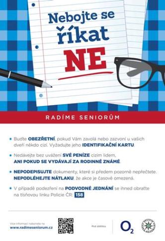 Kampaň pod záštitou O2 a Policie ČR s názvem Nebojte se říkat Ne je zaměřena především na seniory a jejich blízké. Základní doporučení lidé najdou na webu Radíme seniorům. V průběhu října dostanou všichni zákazníci O2 starší šedesáti let několik doporučení ve vyúčtování služeb. Následovat budou plakáty na telefonních budkách rozmístěných po celé republice a samolepky s radami určené na domovní dveře, které budou postupně k dispozici na všech O2 Prodejnách.