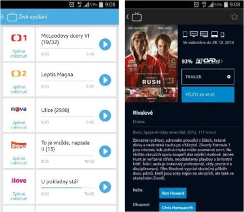 Aplikace v prvotní fázi obsahuje 20 českých a zahraničních kanálů. „Předpokládáme, že největší zájem bude o zpravodajské vysílání. Díky aplikaci ale budeme dále zkoumat, co klient sleduje, a podle toho budeme i postupně naši nabídku rozšiřovat,“ dodává David Duroň. Co se týče videotéky, společnost uzavřela spolupráci s ČSFD. Před zakoupením placeného filmu si tak uživatelé mohou zhlédnout trailer či přečíst recenze.