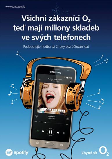 O2 zařazuje do své nabídky hudební streamovací službu Spotify. Svým zákazníkům tak nabídne 30 milionů skladeb bez čerpání dat z jejich tarifu. Službu Spotify Premium získají na tři měsíce zdarma a bez spotřeby dat automaticky všichni zákazníci s paušálním tarifem s internetem. Po třech měsících zdarma bude možné přejít na neplacenou verzi Spotify s reklamou, nebo pokračovat s placenou prémiovou variantou bez reklam za 159 korun.
