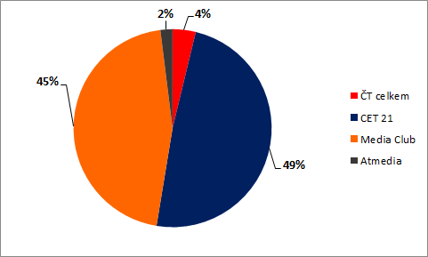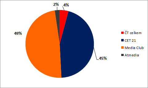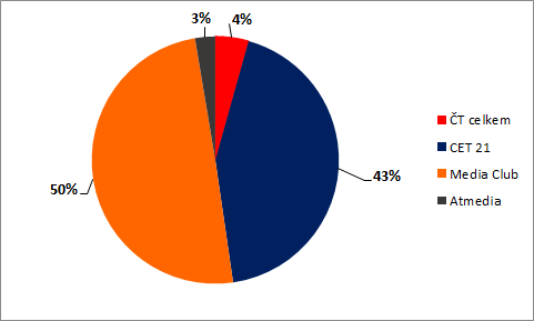 O zhruba 1,5 milionu TRPs se v loňském roce dělily na reklamním trhu především dva subjekty: CET 21 (televizní skupina Nova) a Media Club, zastupující stanice skupiny Prima, Barrandov a Óčko. V nejmladší sledované cílové skupině 15-54 dosáhla nejvyššího podílu na doručených TRPs Nova, ve skupinách 15-69 a 15+ se na hranici 50% podílu pohybovaly stanice zastupitelství Media Club.