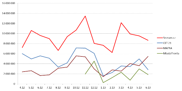 Zdroj: AdMonitoring, SPIR, MEDIARESEARCH, 4/2012-6/2013