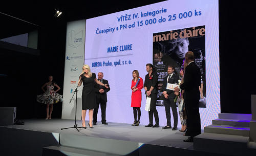 Petra Fundová, ředitelka Burda Praha, přebírá cenu za Marie Claire, vítězný časopis s prodaným nákladem od 15-25 tisíc. Ten se stal i letošní Hvězdou roku.