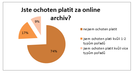 Většina Čechů preferuje přístup do online archivů zdarma (74,3 %). Ochotu platit poplatky kvůli sledování 1–2 typů pořadů projevilo 16,8 % dotazovaných, 9 % je ochotno platit za přístup k více typům pořadů. Sledování zdarma upřednostňují spíše ženy.