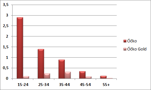 Profilaci potvrzují i červnová data: Zatímco hlavní kanál Óčka měl v červnu nejsilnější podíl ve věkové skupině 15-24 let (2,9 %), Óčko Gold  dosáhlo svého nejvyššího podílu u diváků ve věku 35-44 let (0,3 %), a to zejména u mužů.