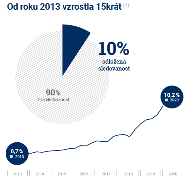 Růst odložené televizní sledovanosti zrychluje od konce roku 2018. Za