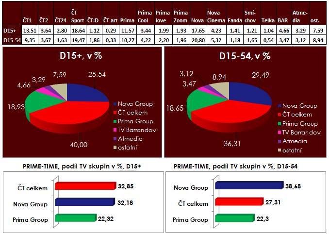 podíl u diváků starších 15 let.