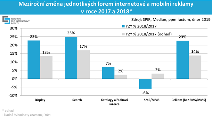 Podíl mobilní reklamy z celkové display reklamy byl 30 % (5,95 mld. Kč), meziročně vzrostla o 107 % a pro rok 2019 je u ní odhadován 20% růst.