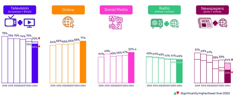 jako televizní zprávy, které oproti loňsku poklesly. Televizní a rozhlasové zprávy jsou však stále důvěryhodnější, ukazuje nová zpráva