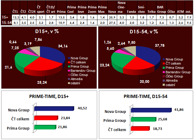 Čtvrteční večer patřil tradičně pořadům Ordinace v růžové zahradě (Nova), který zhlédlo 1,5 mil. diváků starších 15 let (podíl 39 %) a magazínu Prásk! (Nova) s průměrnou sledovaností necelých 800 tis. diváků. Díky tomu se kanály skupiny Nova dostaly v hlavním vysílacím čase přes úroveň 40 %.