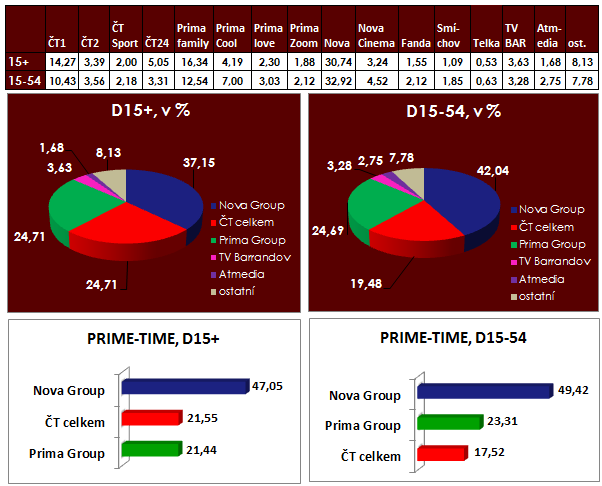 Čtvrteční večerní sledovanost vyšla v hlavním vysílacím čase nejlépe skupině Nova, která se v prime-timu dostala přes 47 % (15+), ve své hlavní cílové skupině 15-54 dokonce téměř k 50 %. Ordinace v růžové zahradě dosáhla v širší skupině 15+ hranice 2 milionu diváků.