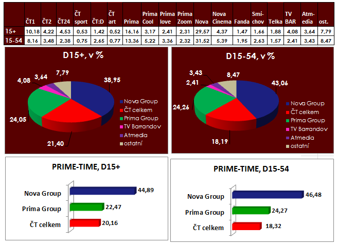Čtvrteční prime-time patří s odstupem skupině Nova, která díky pořadů Ordinace v růžové zahradě a Prásk si v hlavním vysílacím čase udržuje dvojnásobný náskok před konkurencí.