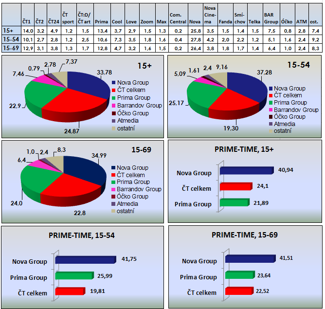 Úterní večer patřil tradičně seriálu Ordinace v růžové zahradě (Nova), který se stal nejsledovanějším večerním pořadem po 20. hodině se sledovaností 1,55 mil. diváků starších 15 let (podíl 37 %). To skupině Nova zajistilo vyšší než 40% podíl v hlavním vysílacím čase.