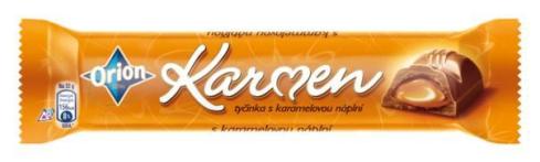 Značka Orion společnosti Nestlé připravila zcela novou mléčně čokoládovou tyčinku Karmen s karamelovou náplní. Na obchodech je novinka k dostání od 1. listopadu 2012, a to výhradně na pultech tradičních českých nezávislých obchodů a ve velkoobchodní síti Makro / Metro v ČR i SR.