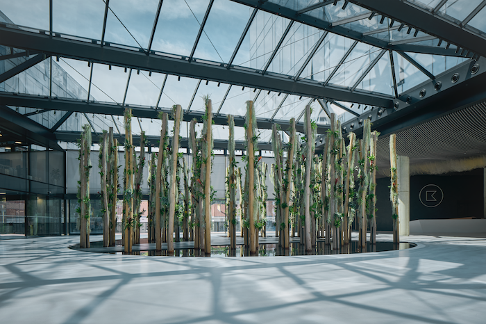 V centru našlo místo i současné umění. Jedním z děl, které vzniklo „na míru prostoru“, je například skleněná plastika „Ledovec“, která osvětluje vstupní lobby. Je to největší dílo společnosti Lasvit v ČR, autorem je umělecký ředitel Lasvitu Maxim Velčovský. Vstupní lobby oživuje epifyt sestávající ze 76 akátových kůlů, které jsou osazeny čtyřmi tisíci zelených i kvetoucích rostlin od architekta Zdeněk Sendler spolu s architekty budovy. Podobné ostrůvky vegetace vytvořil i ve vyšších patrech některých budov. Vchod do budov z ulice Evropská oživuje další dílo - „Planeta“, jejímiž autory jsou Jan Aulík, Leoš Horák, David Zalabák a Pavel Filip. Interiéry pak budou doplněny pracemi Pavla Roučky, Jana Poupěte, Františka Hodonského, Milana Housera a Jana Kovaříka.