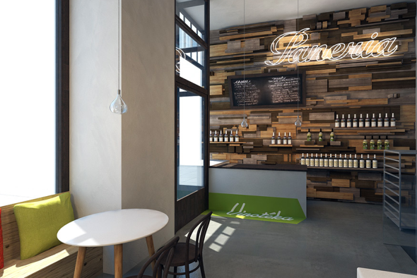 Redesignem procházejí i jednotlivé prodejny. „Naším cílem bylo rozdělit prodejny na nezávislé prodejní zóny. Dřevěný vinný koutek, hlavní nákupní deska a mléčný bar s bílým obkladem,“ vysvětluje studio Visualio, které novou vizuální identitu připravilo. Cílem redesignu je osvěžit interiér a učinit ho více současným.
