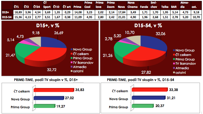 Páteční večerní sledovanost byla opět v režii především pořadů ČT1. Nejsledovanějšími se staly talk show Všechnopárty (téměř 900 tis. diváků starších 15 let) a pohádka Lotrando a Zubejda (necelých 800 tis. diváků starších 15 let). I díky tomu zvítězily kanály České televize v pátečním prime-time v obou sledovaných cílových skupinách diváků.