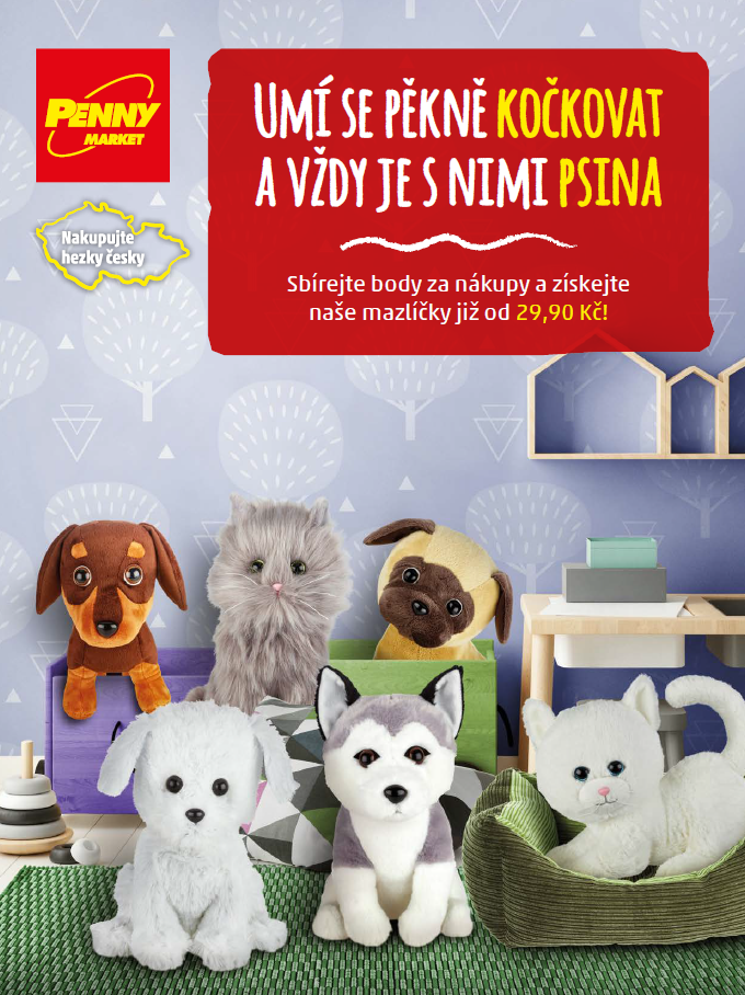 Penny Market spouští 7. února novou věrnostní kampaň, v níž nabídne šestici plyšových koček a psů. Hračky bude možné zakoupit se slevou při získání potřebného počtů bodů.