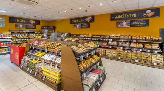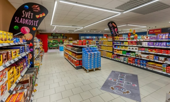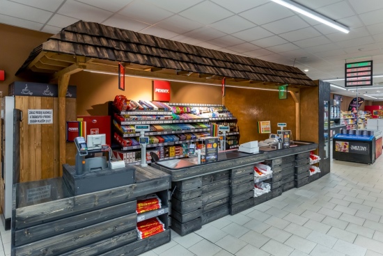Interiéru nové prodejny dominují dřevěné prvky a detaily. Novinkou jsou také zkratky mezi jednotlivými sekcemi a umístění sortimentu ve slepých uličkách, jež zákazníkovi mají umožnit snadnou a rychlou orientaci v nabídce zboží jedním pohledem. Dalšími prvky jsou například plochy určené dětem, které si přímo v prodejně mohou skočit panáka anebo se zabavit jednoduchými úkoly, zatímco jejich rodiče nakupují.