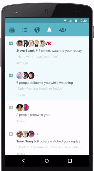 Stejně jako v případě Twitteru ji symbolizuje zvon a ohlašuje různé druhy interakcí uživatelů se zveřejněným obsahem. V případě Periscope jde o oznámení každého jednotlivého přehrání záznamu konkrétním uživatelem, stejně jako získání nového followera. Tým vývojářů Periscope však na svém blogu zmínil, že tím nejsou možnosti záložky zdaleka vyčerpány a počítá s jejím rozšířením. I tyto kroky podtrhují, že live video se stalo trendem, který si v současnosti žádná sociální síť nedovolí ignorovat.