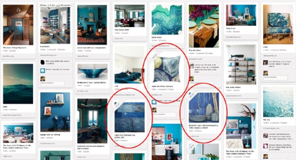 Další výhodou Pinterestu je jeho způsob organizace podle témat a zájmů. Jednotlivé nástěnky se tak mohou týkat například svateb, dekorací, dárků, receptů, barev aj. V rámci jednoho profilu je také možné navodit jednotlivými nástěnkami určitou atmosféru či náladu, což může posílit konzistentní obraz dané značky. Dobré je však na svou nástěnku „připíchnout“ i jiné než jen produktové fotografie. Například americký obchod s nábytkem a dekorací West Elm na svou tematickou nástěnku Akvamarín zařadil jen 3 své produktové fotografie. I tak však dosáhl skvělého výsledku.
