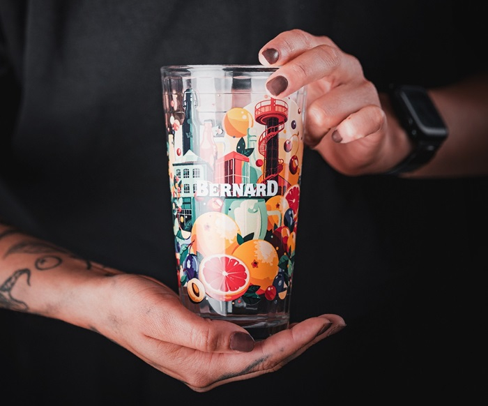 Sklenici pro ovocná nealko piva o objemu 0,5 a 0,3 litru s novou grafikou pivovar distribuuje do českých restaurací a hospod s čepovaným nealkoholickým pivem Bernard. Sklenice je ale možné si pořídit i domů, jsou k dostání ve značkových prodejnách pivovaru a také v e-shopu.