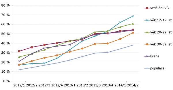 Z demografického pohledu jsou mezi majiteli elektronických zařízení nadprůměrně zastoupeni především lidé ve věku 20-24, vysokoškolského vzdělání a obyvatelé hlavního města. U nich procento vlastnictví vyšší, než je průměr v populaci.