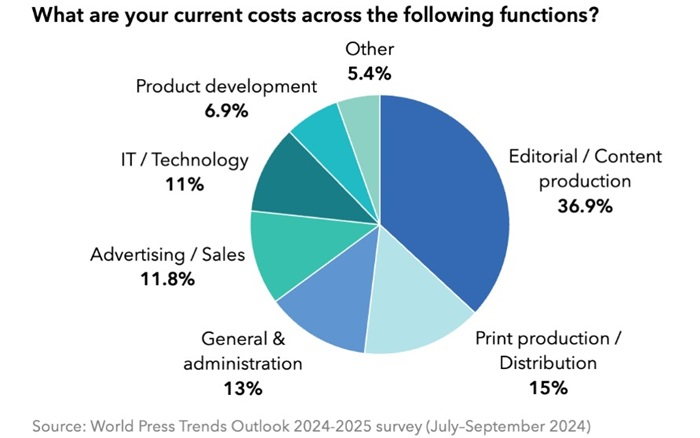 Snaha přilákat pozornost čtenářů vede k rostoucím investicím do redakční práce. Podíl výdajů na redakci představuje téměř 37 % celkového rozpočtu oproti 28 % o rok dříve. Naproti tomu investice do tiskové produkce mírně klesají a investice do vývoje nových produktů se za rok snížily dokonce o polovinu. To může být podle zprávy důsledkem pokračujícího úsilí investovat do rozvoje stávajících produktů spíše než vytvářet produkty nové.