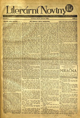 Píše se středa 9. března 1927 a na pultech trafik se objevuje nový list pod názvem Literární noviny, v záhlaví má ročník I, číslo 1. Je vytištěn na klasickém novinovém papíru a v klasickém formátu novin. V úvodníku Neseme vám noviny…, Bohumil Mathesius vysvětluje poslání nového titulu: „Přineseme všechno, o čem si myslíme, že je důležité o knize, knihách a těch, kdo je napsali, doufáme, že čím dál úplněji a obšírněji. Když na něco zapomeneme, tak nám připomeň. Napiš nám, co tě zajímá. A nezapomeň: my nejsme revue, my jsme noviny“.