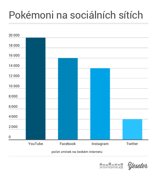 Nejvíce zmínek o Pokémon Go bylo v českém online prostředí zaznamenáno na YouTube, Facebooku a Instagramu.