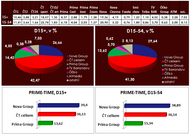 Nedělní prime-time patřil především televizním stanicím skupin Nova a České televize.