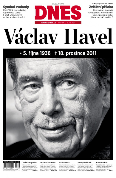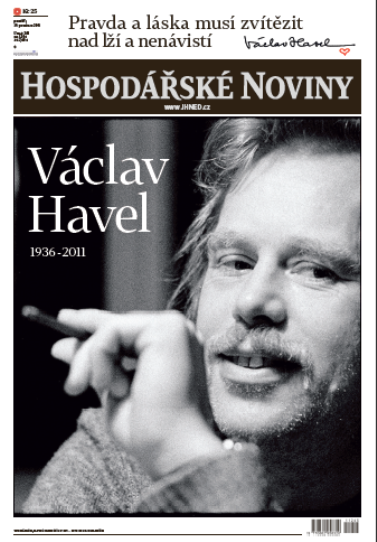 Pondělní vydání všech českých deníků – i bulvárních či sportovního Sportu – vzpomínají na prvního polistopadového prezidenta Československa a později České republiky mimořádnými vydáními a černou barvou na titulních stranách. Deníky Lidové noviny, Hospodářské noviny a regionální Deníky opustily svoji korporátní modrou barvu pro názvy svých titulů a pro pondělní vydání je nahradily černou nebo tmavě šedou barvou.