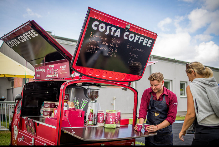 Agentura Up brand activation představila projekt kávy Costa Coffee (patřící pod Coca-Cola HBC), kdy se v rámci kampaně šířila osvěta o tom, že si lze kvalitní kávu připravit i doma nebo v kanceláři. Miroslav Jun, account manager, a Radim Krahula, projekt manager agentury, popisovali, proč se rozhodli udělat pojízdnou kavárnu právě v italském autíčku Piaggio. „Bratři Costové pocházeli z Itálie a tak nás napadlo italské vozítko, které hned upoutá pozornost. Do něj jsme umístili tým vyškolených baristů a sampling v místě prodeje,“ řekl Jun.