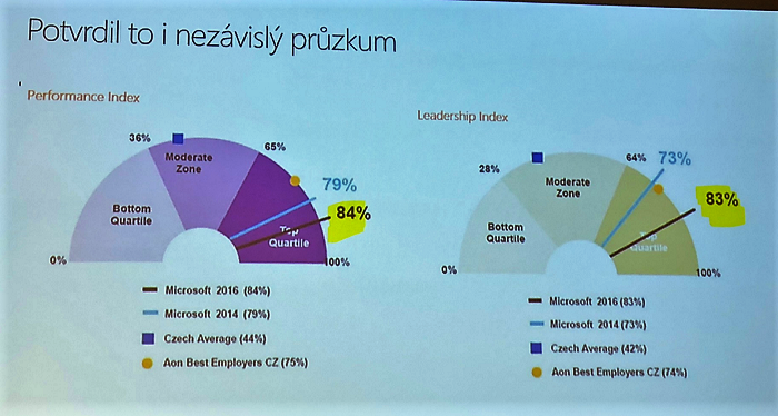 Lenka Čábelová z Microsoftu popsala proměnu zaměstnaneckého přístupu, která se v tuzemské pobočce odehrála. Firma přešla na koncept „práce odkudkoli”, kdy si zaměstnanci sami volí, odkud budou každý den pracovat. Aby byla zachována týmovost, určila firma jeden den v týdnu jako jednotný, ve kterém se ve firmě setkají všichni zaměstnanci. „Mění se charakter a pojetí práce. Větší počet pracovních rolí si může dovolit časovou flexibilitu, svobodu a prostor dělat si věci po svém a vzít zodpovědnost za výsledky," přiblížila. Změna konceptu, která se připravovala dva roky a vedla mj. i k novému pojetí kancelářského prostoru, přinesla Microsoftu nárůst spokojenosti zaměstnanců i produktivity práce. Jak ale Čábelová zdůraznila, tento koncept není univerzálně přenositelný, byl připraven na potřeby Microsoftu a v každé firmě by měli manažeři uvažovat, co by pro danou firmu bylo nejvhodnější.