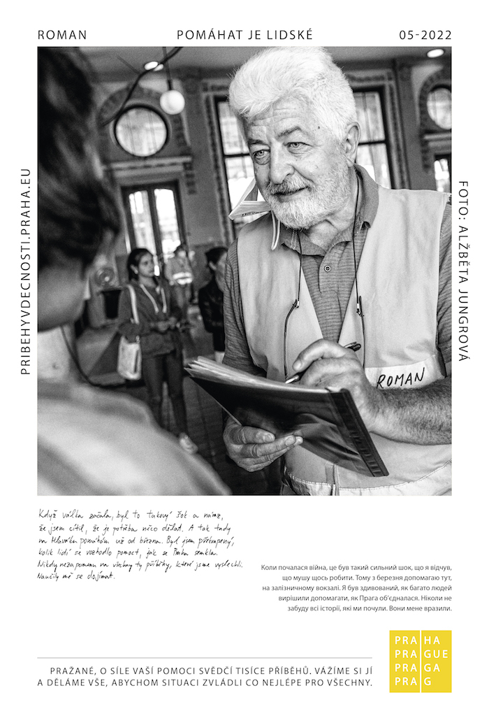 Magistrát hl. m. Prahy spustil novou kampaň, v níž reaguje na situaci spojenou s válkou na Ukrajině a přílivem uprchlíků. Fotoreportáží vypráví skutečné příběhy uprchlíků a dobrovolníků, kteří jim pomáhají.