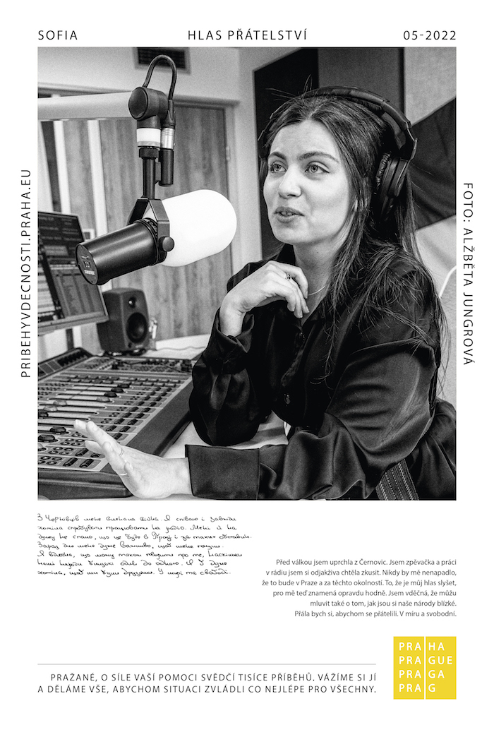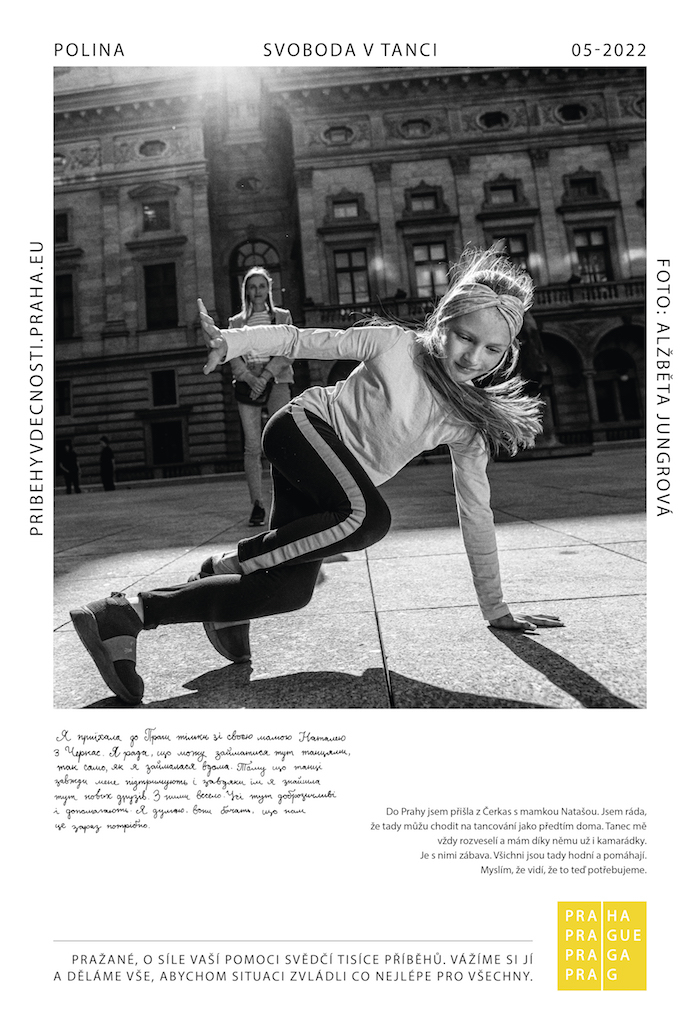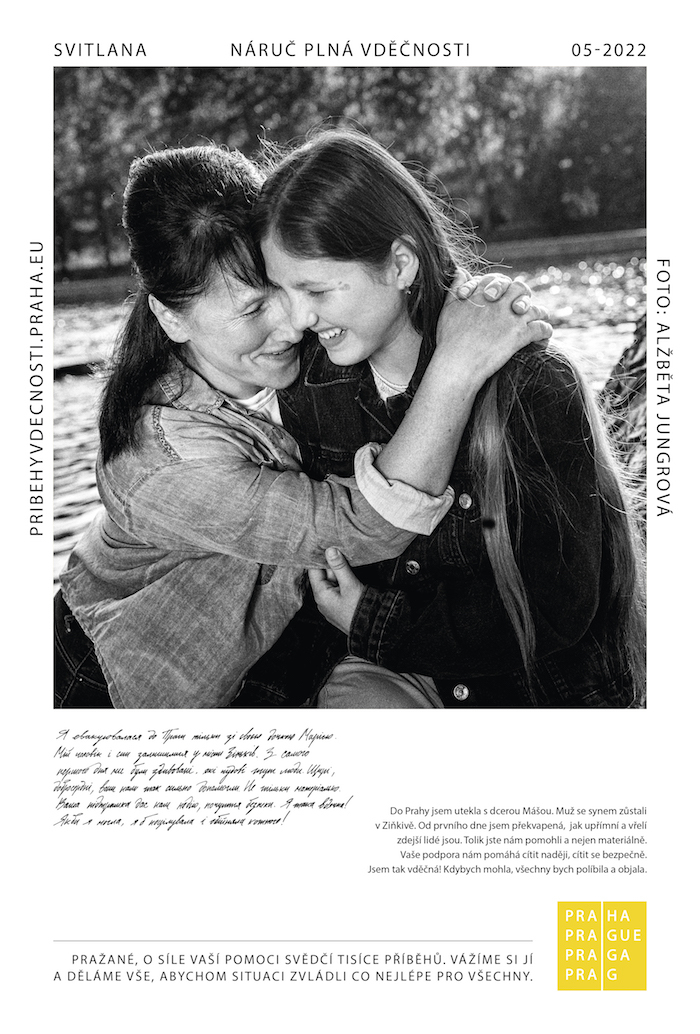 Kampaň pracuje se šesticí portrétů pojmenované „Příběhy vděčnosti“, jež zachycuje ukrajinské uprchlíky i Pražany, kteří se rozhodli pomoci. Prostřednictvím jejich osobních výpovědí chce přinést pohled na aktuální situaci skrze jednotlivé lidské osudy. Autorkou fotografií je reportážní fotografka Alžběta Jungrová.